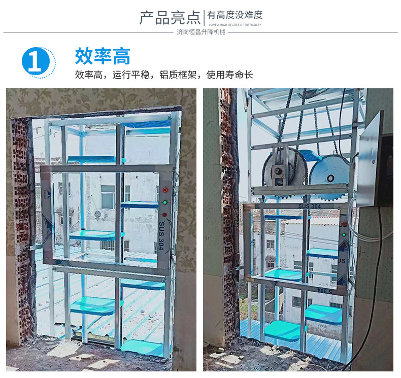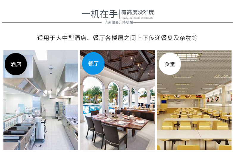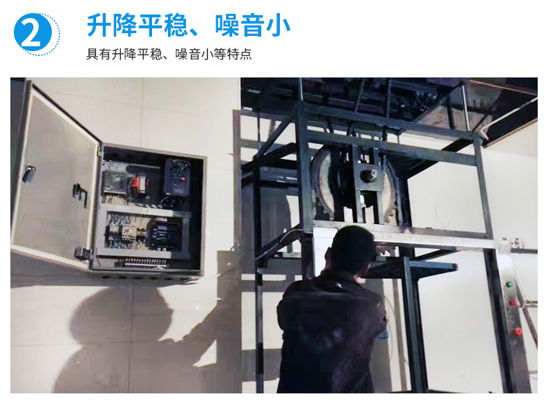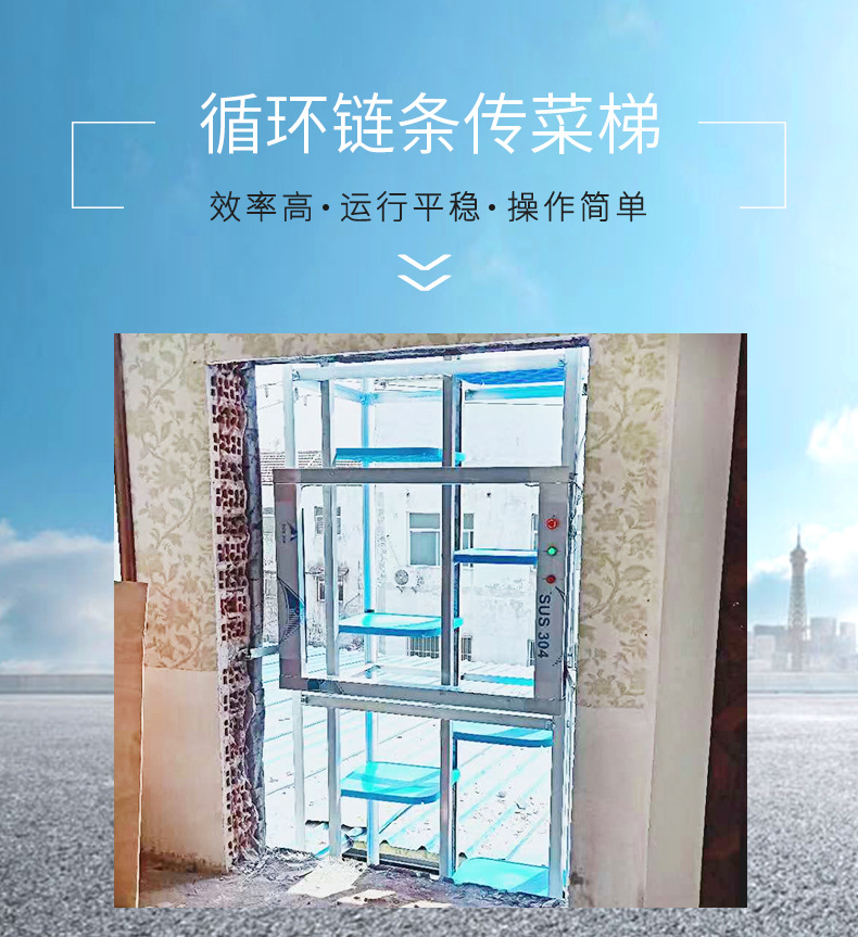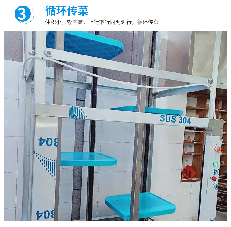 2.效率高:上行下行同時(shí)進(jìn)行,循環(huán)傳菜,一臺(tái)抵六臺(tái)傳統(tǒng)的廂式傳菜電梯。